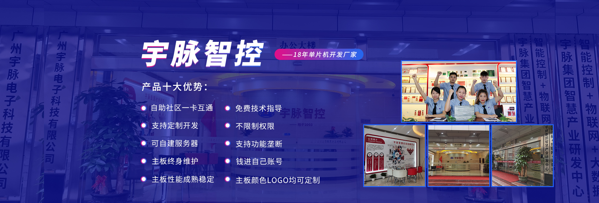 公司前身是2003年成立的宇脈電子石牌經(jīng)營(yíng)部,在廣州新賽格電子城擁有兩個(gè)實(shí)體店,專注于單片機(jī)開(kāi)發(fā)、電子產(chǎn)品定制開(kāi)發(fā)。2014年正式更名為廣州宇脈電子科技有限公司,專注打造無(wú)人值守自助設(shè)備控制系統(tǒng)及后臺(tái)管理系統(tǒng)方案定制的國(guó)家高新技術(shù)企業(yè)。并成為集研發(fā)、生產(chǎn)、銷(xiāo)售和服務(wù)于一體的領(lǐng)軍企業(yè)。
